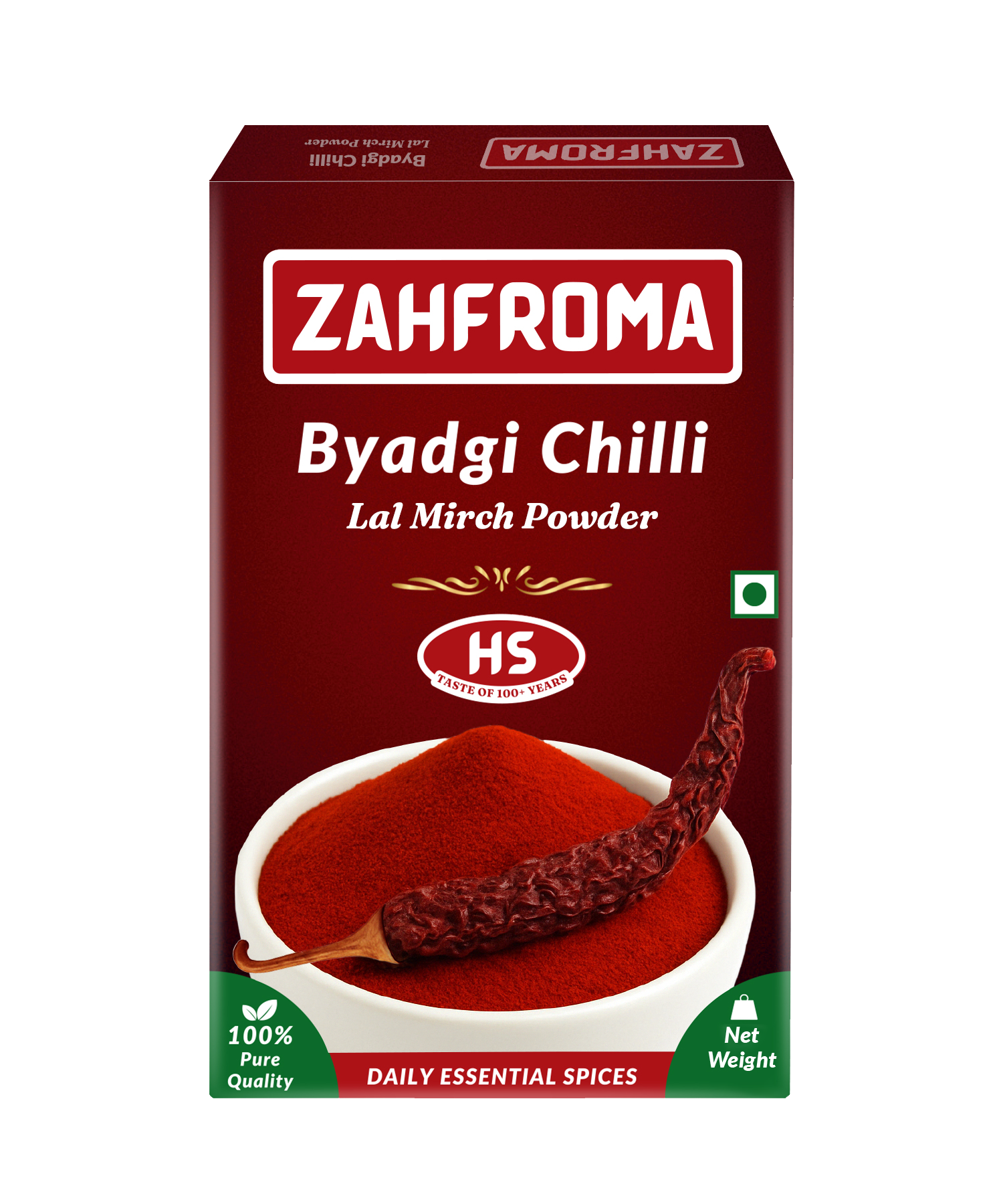 Finest grade of Byadgi Red Chilli with it's natural, bright & vibrant red colour & mild-spicy flavour is ground with hygienic standards to provide you the culinary experience of cooking, rich & naturally colorful dishes. (No Added Colour)