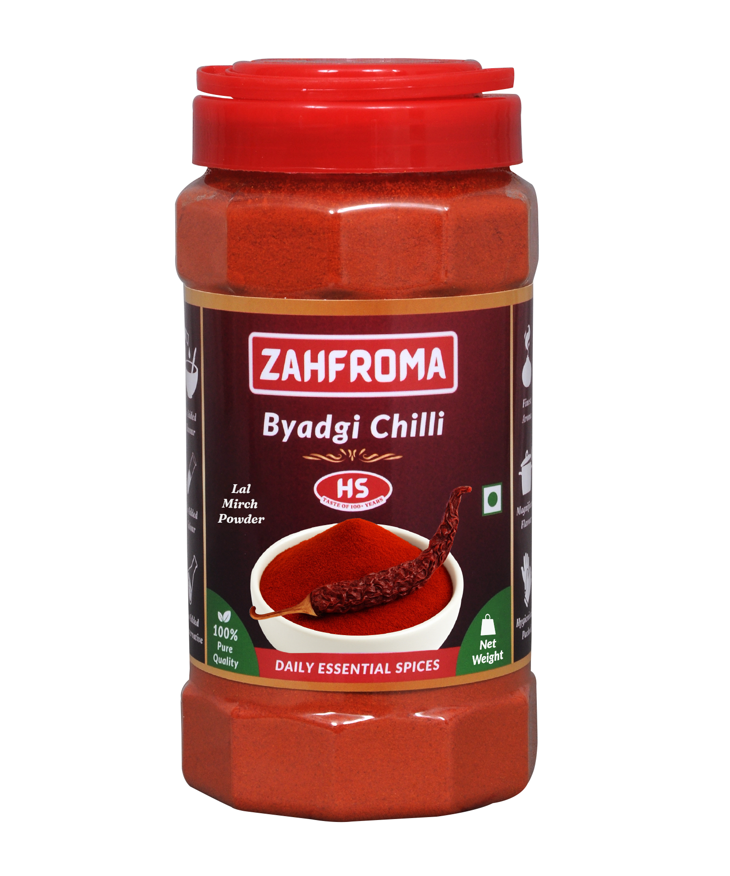 Finest grade of Byadgi Red Chilli with it's natural, bright & vibrant red colour & mild-spicy flavour is ground with hygienic standards to provide you the culinary experience of cooking, rich & naturally colorful dishes. (No Added Colour)