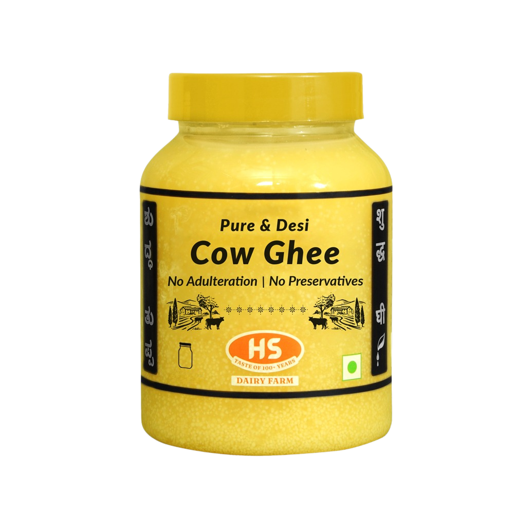 Cow Ghee is a pure and aromatic clarified butter made by slow-cooking cow's milk butter until the milk solids separate and caramelize. Rich in flavor and golden in color, it’s a staple in Indian kitchens for cooking, sautéing, and traditional recipes. Known for its high smoke point and digestive benefits, cow ghee adds a wholesome, nutty richness to dals, rotis, curries, sweets, and more — making it both a versatile cooking fat and a sacred offering in rituals.