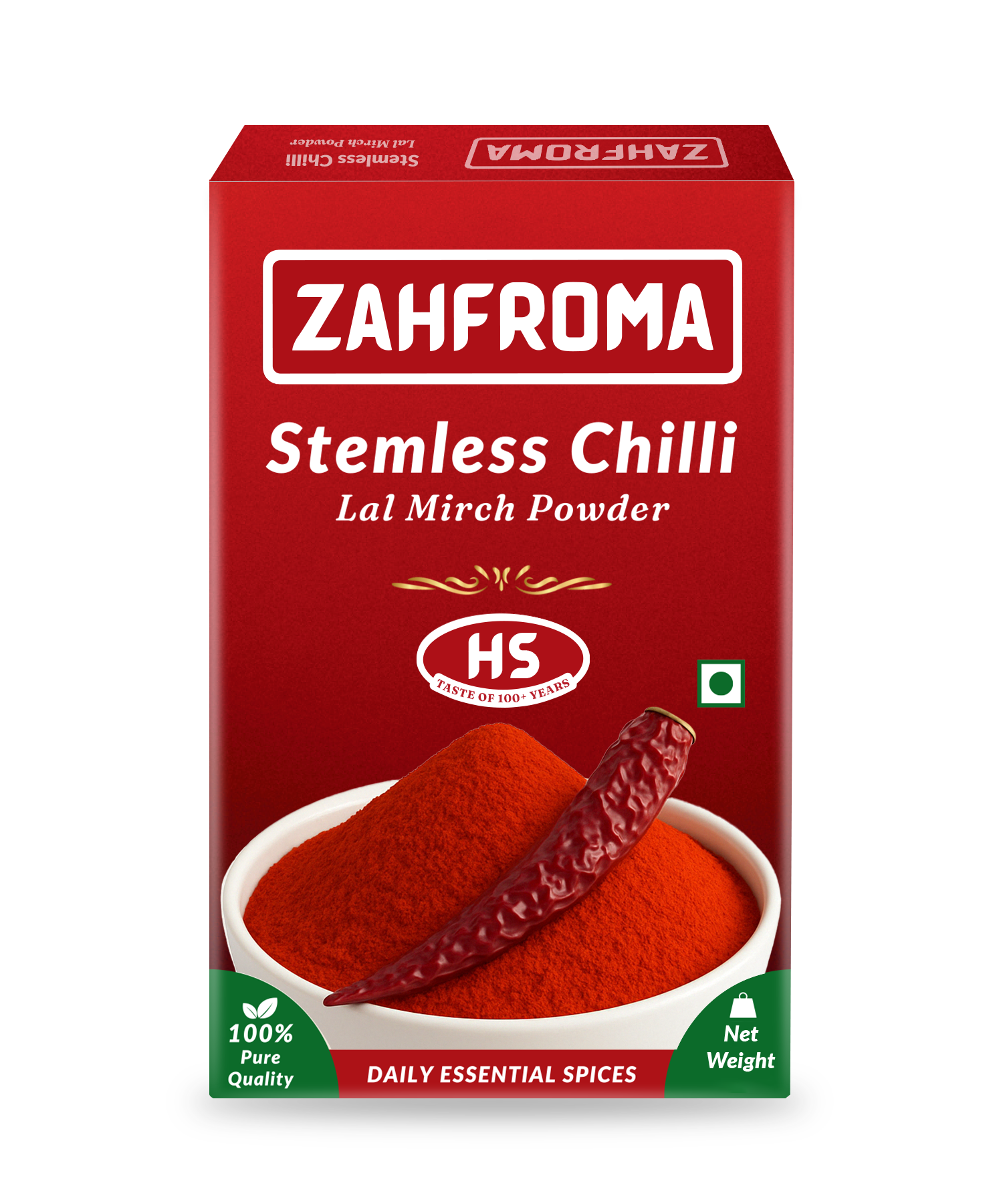 Stemless Chilli Powder is made from carefully deseeded and destemmed dried red chillies, offering a clean, smooth texture and consistent heat. It adds vibrant color, moderate to high spice, and depth to a wide range of Indian dishes. With no stem impurities, this powder ensures purity and blends effortlessly into curries, snacks, and spice mixes.