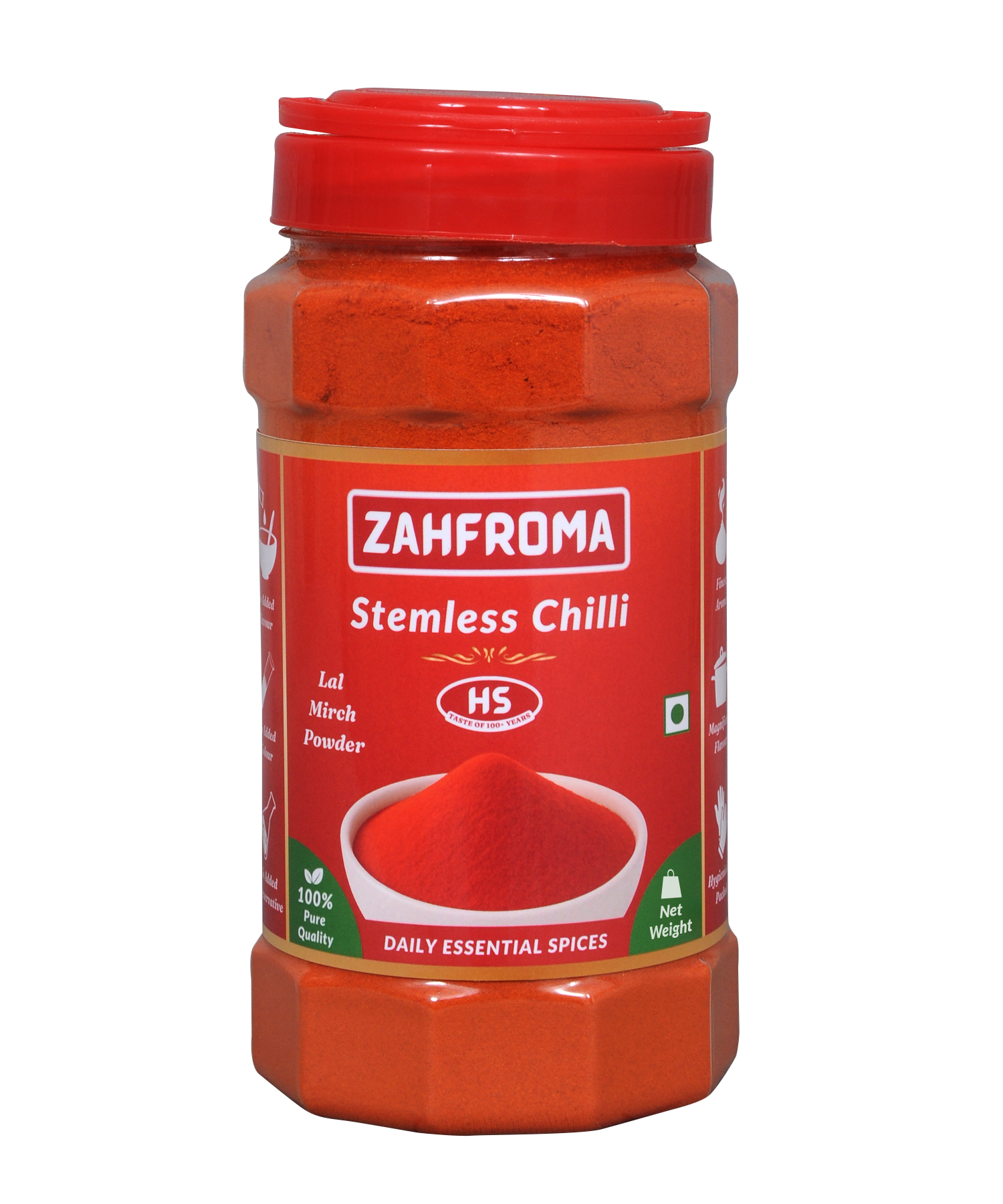 Finest grade of Stemless Chilli with it's natural, bright-red colour & hot-spicy flavour is ground with hygienic standards to provide you the culinary experience of cooking, flavourful & naturally colorful dishes. (No Added Colour)